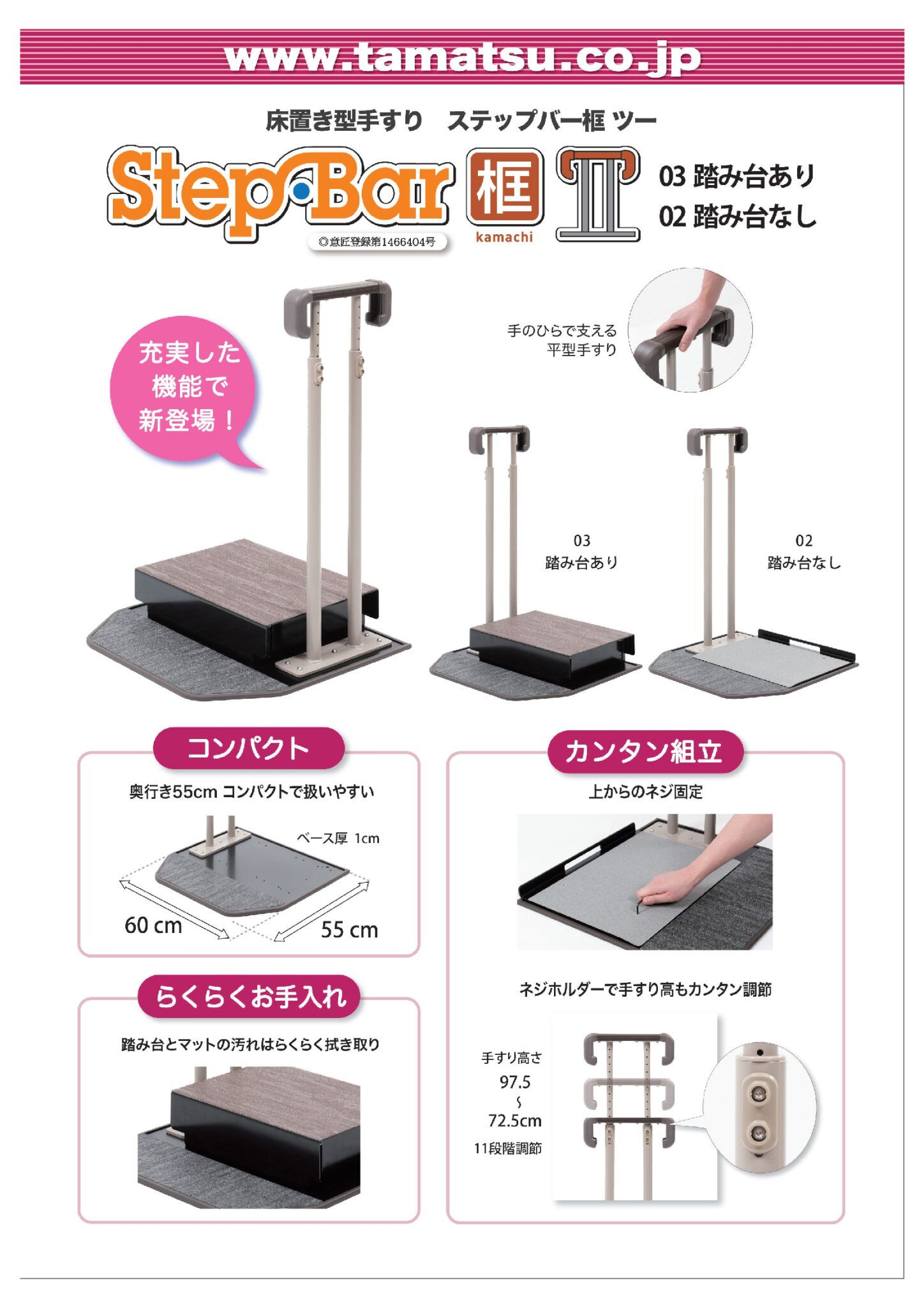 「株式会社タマツ」から出る新商品の上がり框用手すりもかなりコンパクトで玄関に手すりを置きたくても玄関の広さの都合で置けない方や、高さのある窓からベランダに行く時の跨ぎ動作にピッタリじゃないかなと思いました!